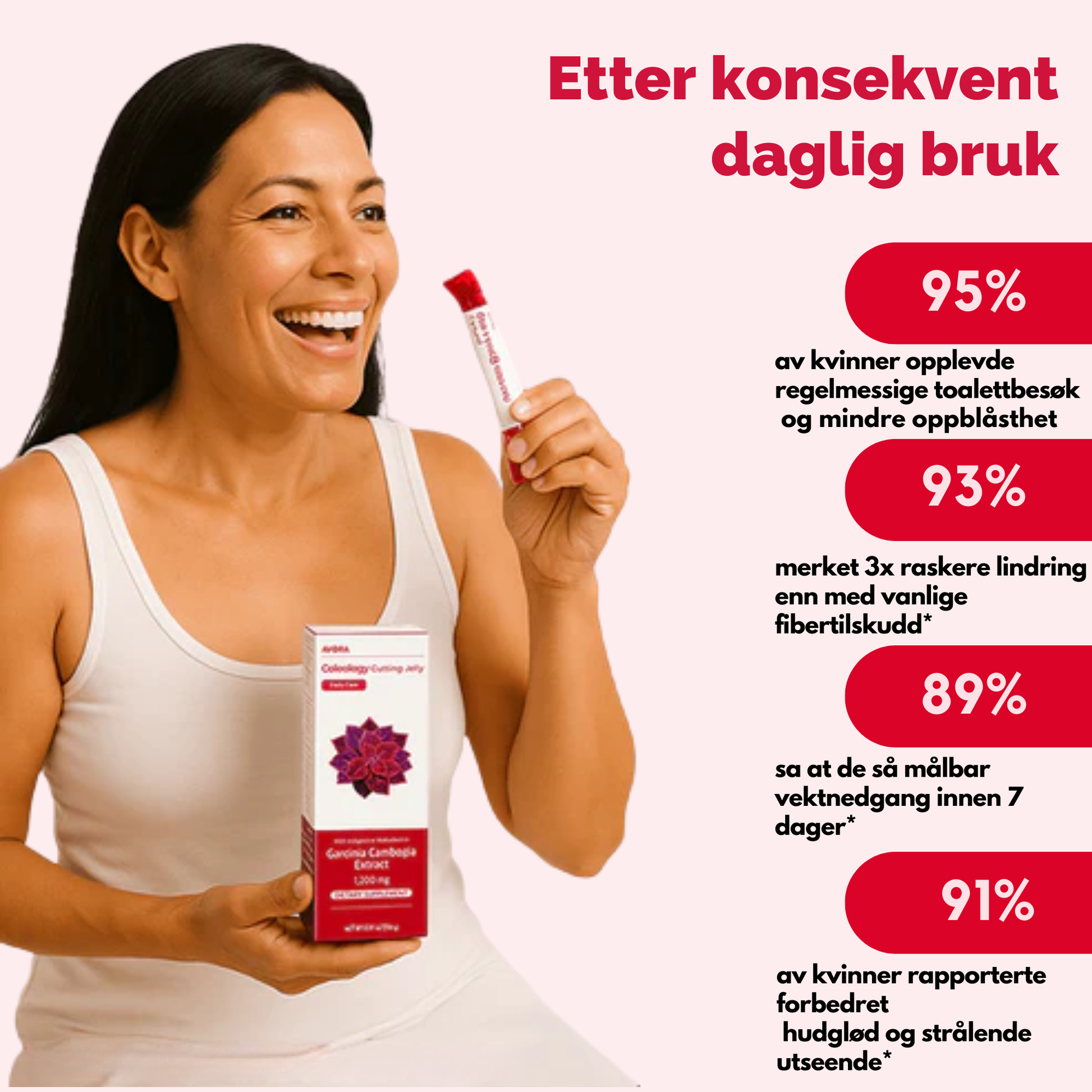Har IBS och lever vanligtvis i lösa kläder för allt gör mig uppblåst. Efter 10 dagar med Avora kan jag bära jeans igen utan att känna mig obekväm! Funkar verkligen och smakar gott (granatäpple!). Enda jag ångrar är att jag inte hittade det tidigare. Tack!! 💕